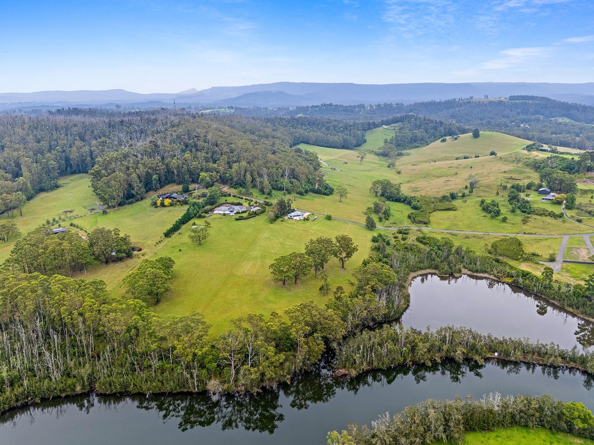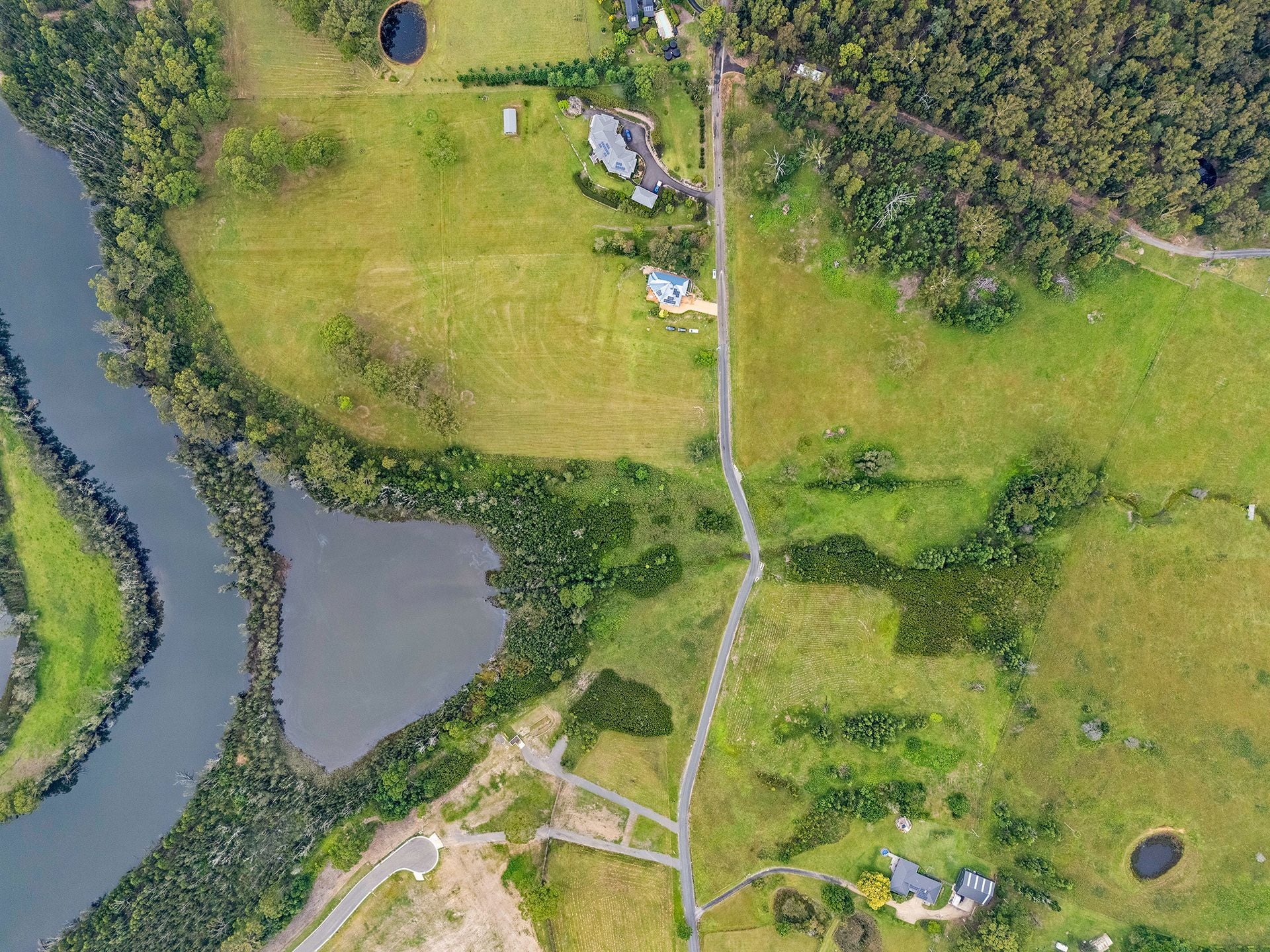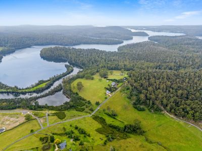 The property, 101B Cornfield Parade Conjola covers 22 acres, included within this area is a tar-sealed entrance road. This road effectively divides the property into two sections consisting of 6 acres of Lake frontage house and land to the east side of the road and 16 acres of land to the west side of the road. The road is maintained by Shoalhaven water/Shoalhaven Council as it is their (right of way) access to the village Water Storage tank and the Telecom Tower, both situated approx 1 km south at the highest vantage point. At the low point of the property, we have a small creek that meanders through the feeding into Lake Conjola.