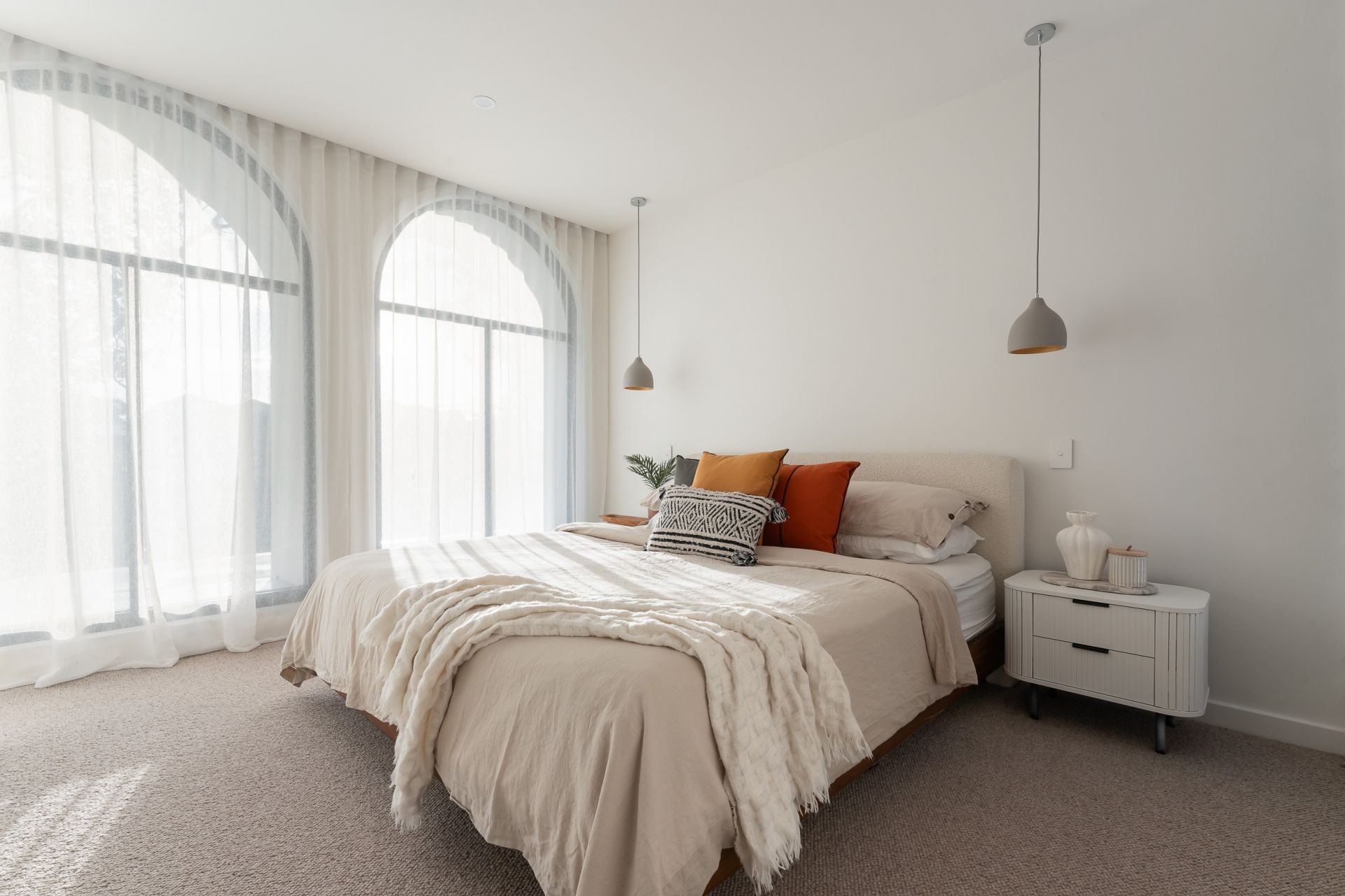 Custom Curved Architecture: Designed with unique curved elements that add an architectural flair, complemented by additional lighting and full-length and also custom windows to maximize the abundance of natural light.