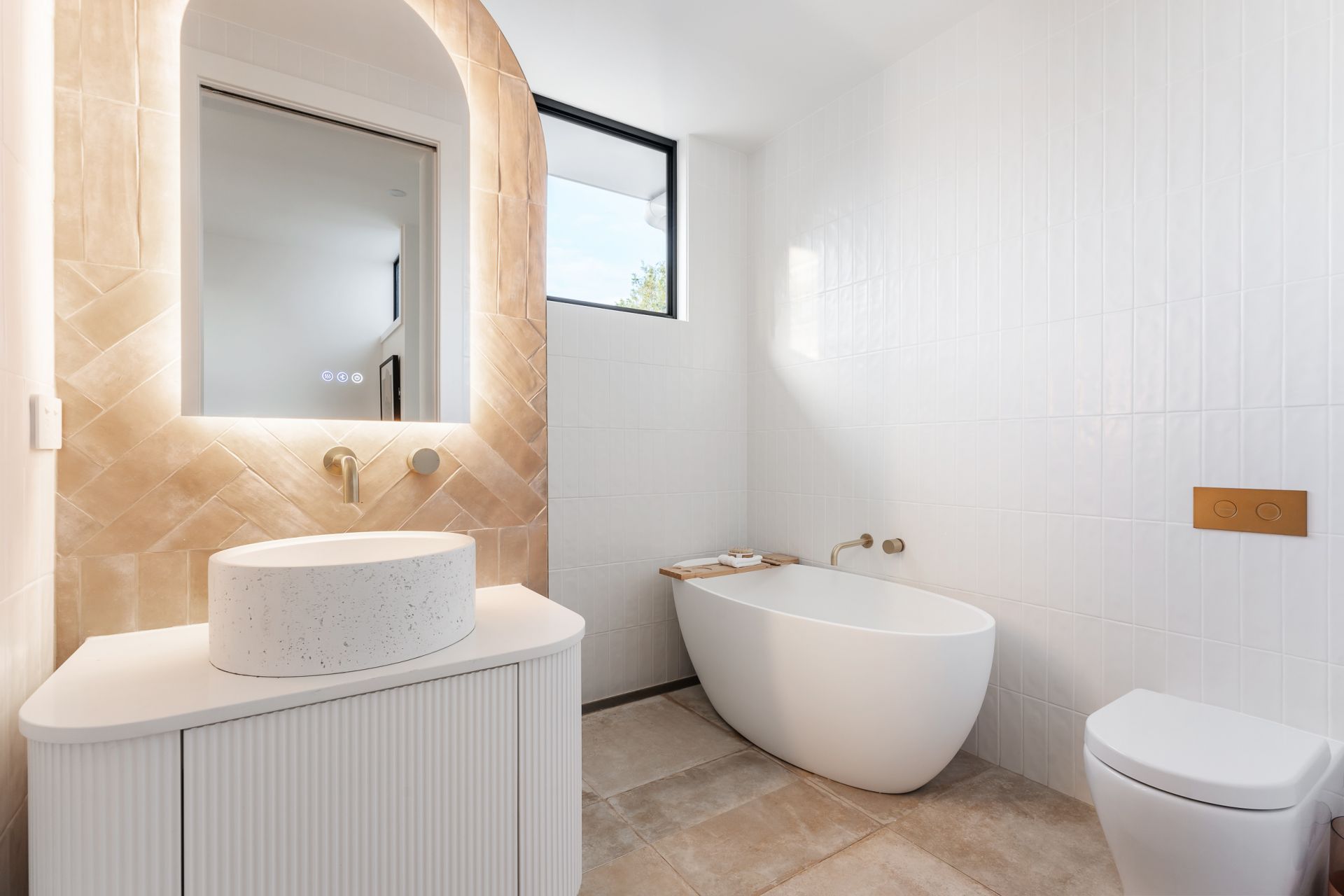 Master Retreat: The luxurious master suite includes an ensuite with a hand-cut marble sink and a full sized walk around robe.