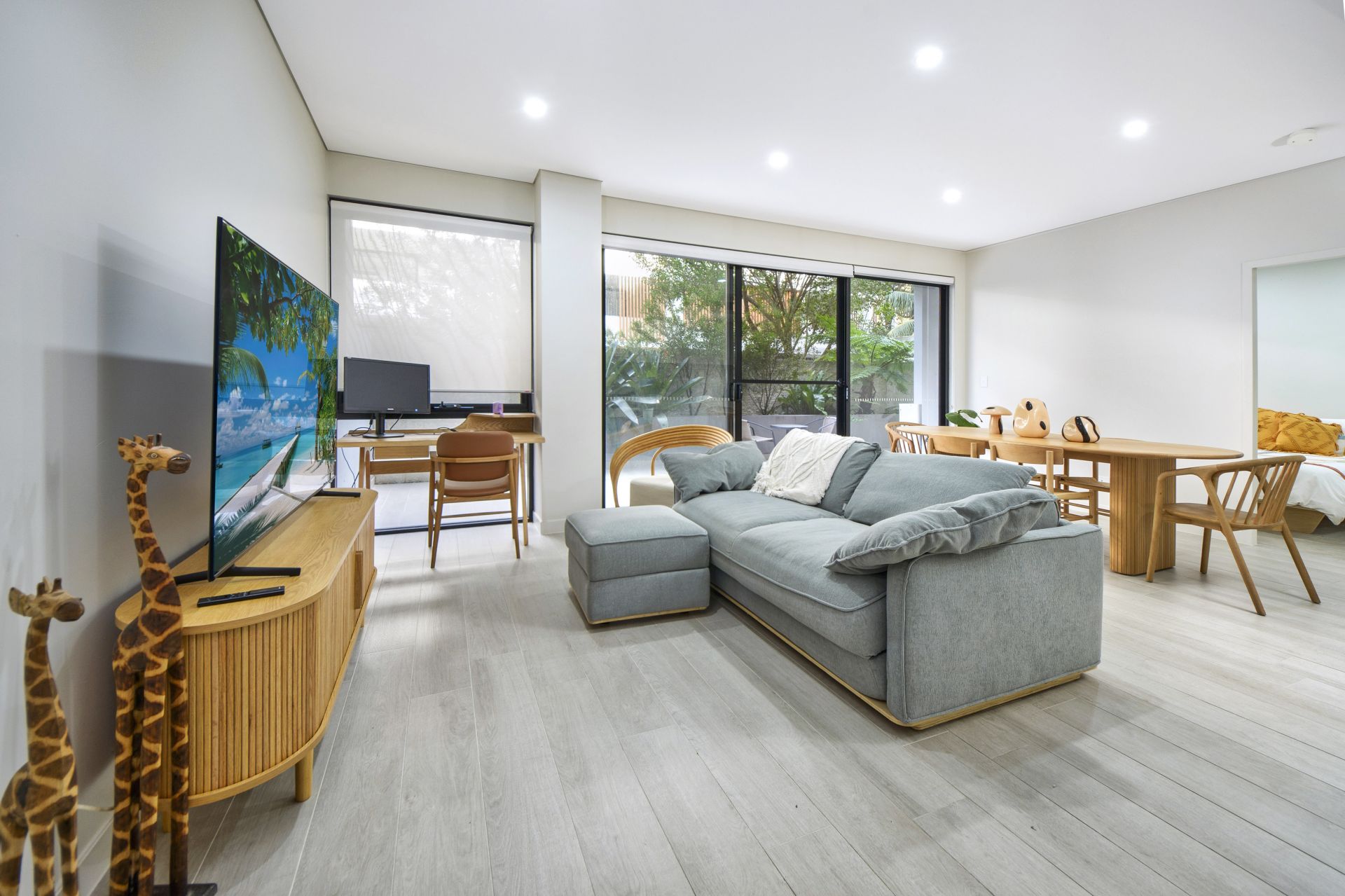 Step into luxury with this beautifully presented open-plan apartment, featuring stunning Italian-style tiles throughout and a seamless flow of space and light. The designer kitchen is a chef's delight, boasting gas cooking, premium European appliances, and a convenient dishwasher.